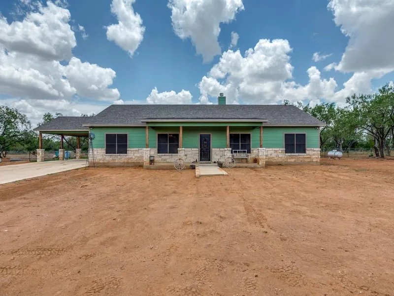 The 2025 custom built home features tons of room with 2,512 square feet inside and expansive front and back porches on the outside. The inside was designed for functionality and consist of 4 bedrooms and 2.5 bathrooms, mud room, office, formal dining room and a very large pantry. Quartz countertops throughout, custom cabinetry, and a water softener system are just a few of the upgrades inside. The rock fireplace compliments the living area while the upgraded GE appliances in the island kitchen are sure to impress anybody looking for both style and efficiency. On the outside of the home the expansive front and back porches invite you to enjoy the peace and quiet away from the city. The backyard has also had sod laid down and is securely fenced inside of a secondary cross fence around the backyard area. An irrigation system makes keeping the backyard green and lush easy. Full hookups for an travel trailer are also located close to the water well for those friends that want to stay a little longer.