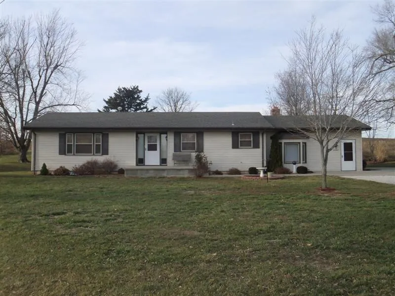 Well maintained ranch home in 1.2 acres m/l with highway frontage. Remodeled kitchen, extra shower in basement, oversized 2 car detached garage, fireplace and storage buildings.