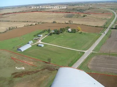 If you are looking for a good spot to build a home or a headquarters take a look at this tract. It has a great location just west of Burlington Junction on Highway 136 in Atchison County and it already has a really nice 60 X 120 ft Quonset building with a full concrete floor, two decent grain bins and a good older machine shed. There are approximately 3 acres and it has lots of possibilities.