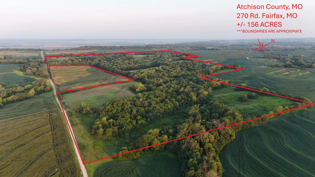 This new mixed use land offering located in Atchison County; MO provides the perfect blank slate for outdoor enthusiasts and investors alike. Comprised of 2 tracts but being offered as a single listing. Consisting of 156 +/- taxable acres total. There is a good ratio of open/tillable acres to timbered acres. The open acres recently expired out of a CRP Program which will allow a new owner the luxury of deciding how they may want to improve or develop this property. The approximately 81+/- open acres were also recently mowed off and cleaned up making this farm easy to access and get around and also gets the process started for a new owner to pursue a new CRP contract or easily convert these acres into productive tillable ground. Consisting of majority 5-9% slopes with predominately loam soils, this farm has a NCCPI rating of 77.4 which puts this farm 4.4 points higher than the county average. Top notch farms of this caliber and in the right area do not come available very often. This farm has been in the same family for over 100 years, and the current owner has owned this farm for the last 30+ years. It is conveniently located in the MO River Bluffs just off I-29 Hwy. Only a short hour drive from St Joseph and 1.5 hours from Omaha. As a crow flies, it is approximately 16 miles south of the Iowa line. Numerous State conservation areas are close offering additional recreational opportunities nearby.