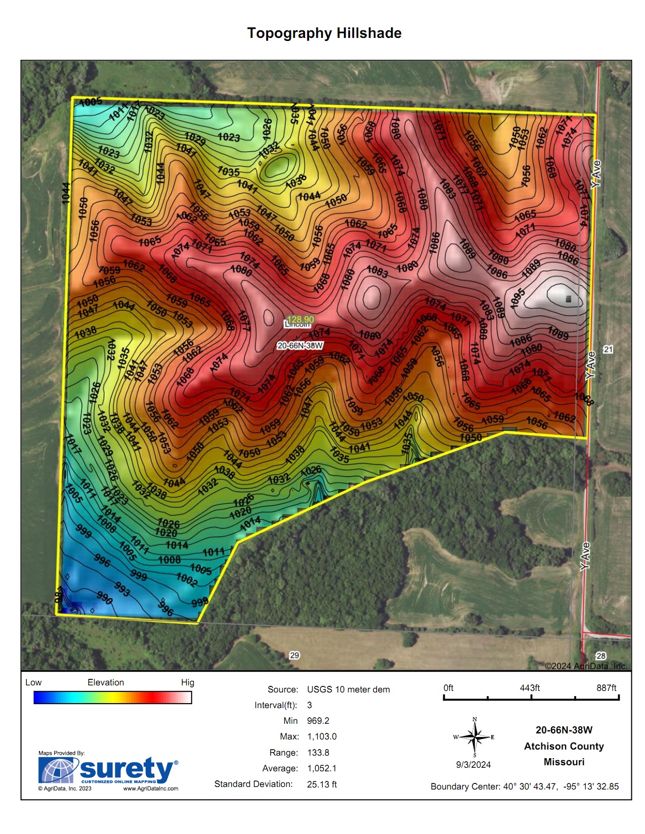Search for detailed parcel information including; Elevation & Vegetation Maps, Ownership Information, Detailed Parcel Information, Crop History Map, Soil Survey Productivity Data, and more.