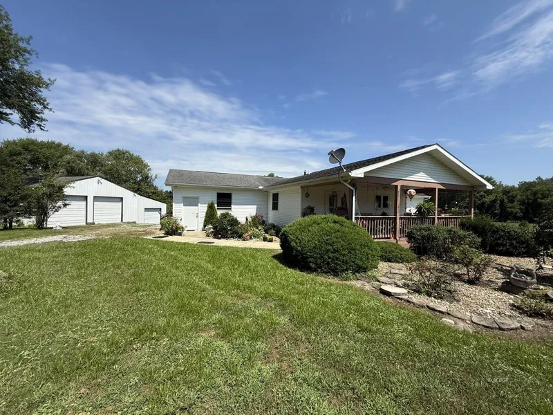 Extremely well-maintained 3-bed, 3-bath home on a private 3+ acre setting with public sewer. Features include a 2-car attached garage and a 3-car detached garage, offering endless possibilities. Enter from the covered front porch into an open floor plan with solid surface counters, a large island, and spacious living, dining, and family areas. The main level includes an updated bathroom, a nice-sized bedroom, a master suite with private bath, and a first-floor laundry room. The finished lower level features a family room with a cozy gas fireplace, an additional bedroom, and a full bath. Outdoors, enjoy room to roam, a peaceful private setting, and plenty of garage space for your hobbies, toys, or workshop needs. This property is a must-see for those wanting privacy and versatility!