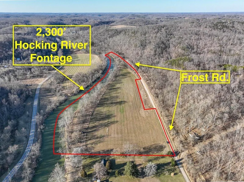 Land for sale in Athens County, Ohio. Located along Frost Rd. in Rome Twp, this 17 acre property has over 2,300' of frontage on the Hocking River. This is the perfect property for a cabin on the river or a small campground. There is a drilled water-well on the property. Electric service is available as well. Nice tree line along the riverbank. A boat ramp for the Hocking River is just 3.5 miles from the property. Any mineral rights the seller owns will transfer with the sale. Annual property taxes are approximately $ 500.00. 3 miles from US-50. Have a look at the property anytime!