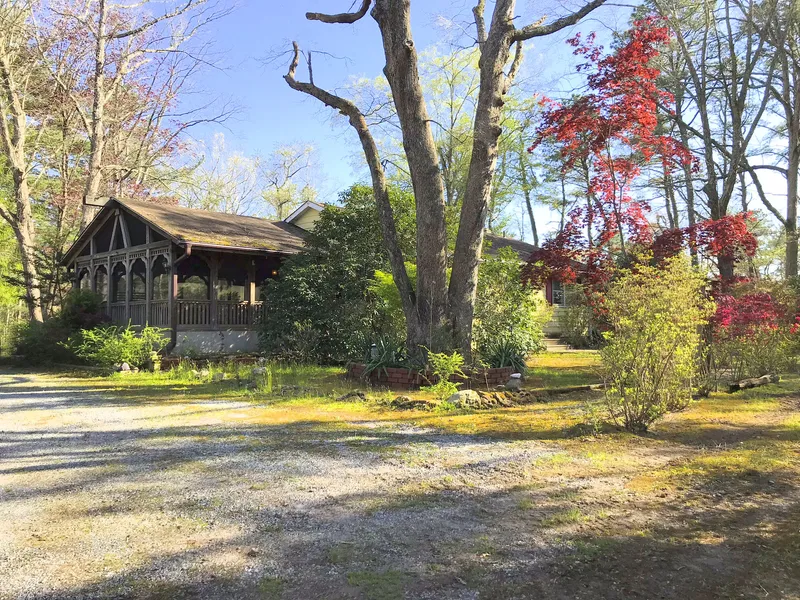 Enter a long stone driveway surrounded by trees and spring foliage to a large 4 bedroom, 1-1/2 bath ranch home on 5 acres. Hear the birds singing and see wildlife on your large carpeted screened in porch w/ Cathedral wood ceiling & french doors that lead to a redone kitchen. Formal dining room. Living room w/hardwood floors, picture window, & built in shelves and set up for a wood stove. One bedroom was made into a laundry room w/washer & dryer that can go back in the basement that has a sump pump & Bilco doors. Newer hot water heater. Roof is approximately 10 yrs old. pull down attic, Large shed with added storage room. 1 car detached garage w/auto garage door opener. Well water has a water softening treatment. One bedroom has stairs to a loft and attic storage. Cyclone fenced in in ground pool is being sold in AS IS condition as is the microwave. Private, Quiet, & Serene describe this ...