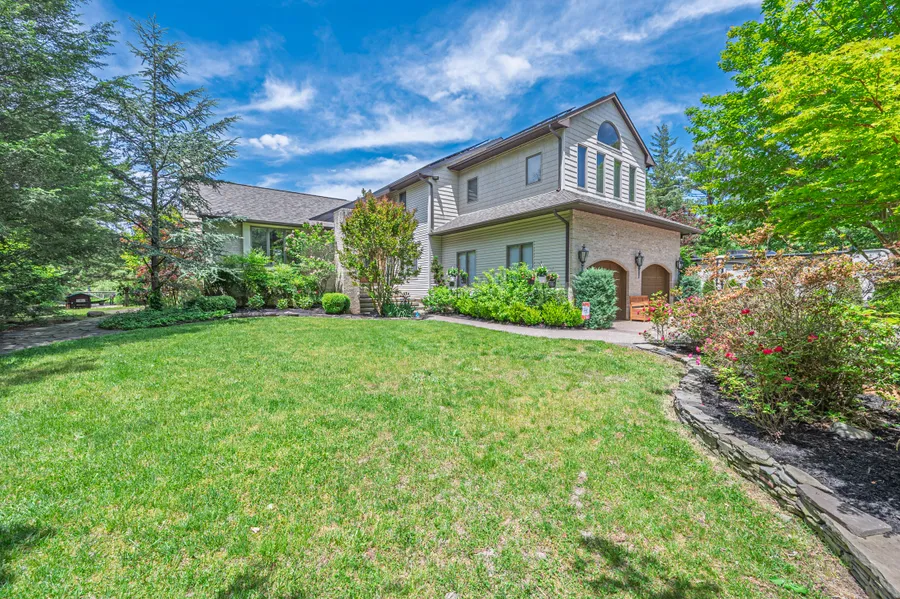 Driving down the long driveway you will arrive at a magnificent Tudor style home surrounded by lush landscaping and parking for 10+ cars and an RV. The sellers have recently replaced the roof and had solar panels installed, paired along with existing Anderson windows and geo-thermal heating this helps keep heating and cooling costs down. With a new septic tank (2023), chicken coop, greenhouse, seven zone sprinkler system and three fenced in paddocks, two of which have animal shelters, this home is ready to become your farm oasis. Enter the foyer with cathedral ceilings overlooking wood plank stairs leading to the second floor and access to the living room with a built-in gas fireplace to your left. Tucked away off the living room is an attached separate bar with seating, a mini fridge and sink which also has access to the large five-acre property and a small deck. To the right of the fro...