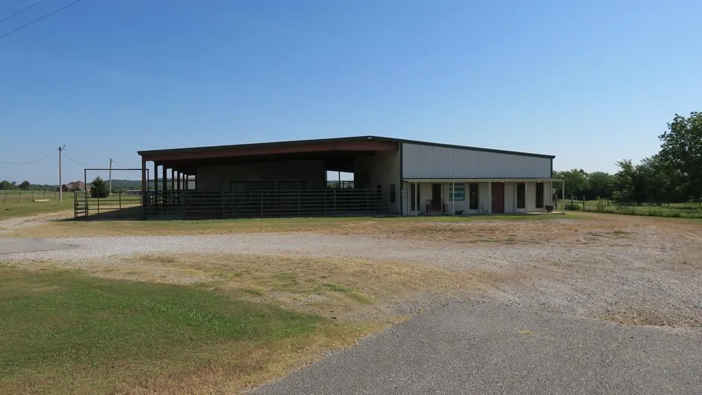 For Sale: Small/Large Veterinary clinic in Atoka, Oklahoma. Total of 12,288 Square feet under the roof with a 1640 Square feet small animal clinic with two exam rooms, Fully equipped surgery room, diagnostic room with digital X-ray machine and blood-work machines, Two kennel areas, Office area two restrooms, and a large work area all under AC. Large anima clinic is 2880 Square Feet and has two hydrologic Chutes, storage rooms, washer and dryer room, and a large corral complex. Outside area has 7768 Square Feet of pens under roof. Clinic sits on 3.09 Acres with excellent highway access.