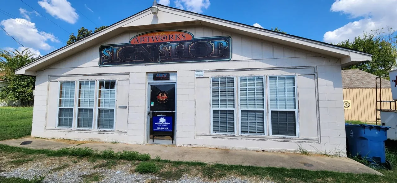 Property is has a partial new remodel in the front area of the building with many new features. Currently used as a sign/print shop. Some of the equipment, tables, desk, and miscellaneous for sale separately with office.