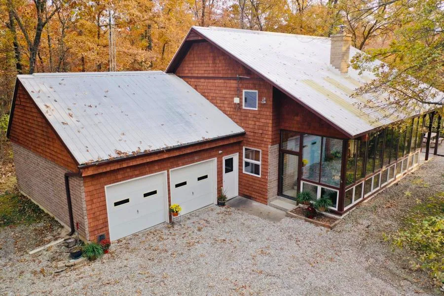 Stunning Woodland Retreat! Includes a private 3+ Acre lake with a dock for swimming plus an additional 5 acres (m/l) of woods. Just 3 miles from town, this custom designed home features a stunning entry through an enclosed 2 story atrium, 4 season patio and greenhouse. The open floorplan features gorgeous hardwood floors, native oak and walnut interior finishes, and an energy efficient fireplace insert with a blower. The kitchen has custom built cabinetry, a double oven, and a spacious dining room. The main level master is complete with a whirlpool tub and walk in closet! 3 generously sized upstairs bedrooms provide plenty of room and window views! There's tons of room for vehicles/RV's/Boats and other toys in the 2 garages! Two additional 4 acre lots are negotiable.