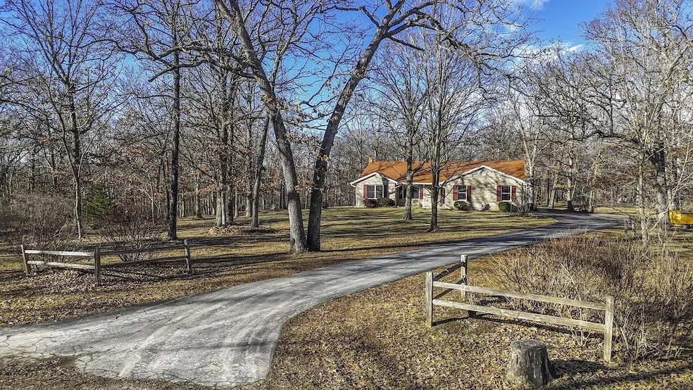COUNTRY LIVING AT IT'S BEST! 3-4 bdrm ranch home situated on over 4 acres, offering a peaceful wooded setting on a quiet gravel road. This move-in-ready home features new flooring & fresh paint. The primary bedroom has a private 3/4 bath with an updated onyx walk-in shower. The vaulted LR opens to a deck overlooking the private backyard, perfect for relaxing or entertaining. The kitchen comes complete w/ all appliances and a dining area that looks out over the enclosed back porch. Main-level laundry includes 1/2 bath for everyday convenience. The walk-out bsmt offers add'l living space w/ a family room, craft room or office, bath, 4th non-conforming bdrm, along with a cozy wood stove & ample storage. Attached 2-car garage and a 24x32 garage/workshop. Don't wait, won't last long!