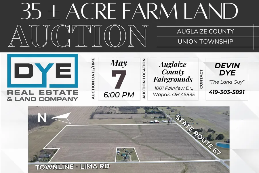 Dont miss this great opportunity to own a mostly all tillable farm located just west of Uniopolis, Ohio. This 35 acre property has a significant amount of road frontage on State Route 67 and Townline-Lima Road. Consisting of Blount, Glynwood, and Pewamo soils with a soil rating of 69.68. This farm is very productive and ready for its new owner. Dont miss your opportunity to bid your price on this Union Township, Auglaize County, 35-acre farm.