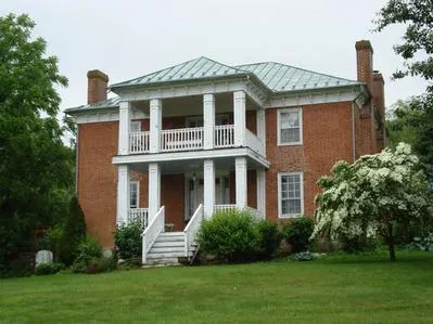 Ca 1854 square brick Italianate home with hip roof, 4 exterior chimneys, center hall & 8 fireplaces overlooks stone-walled gardens & beautiful springfed pond on 80 acres of rolling pasture, hayfield and woods. Many original details include heart pine floors, rounded staircase, and mantels. Large 2 car garage with fine office and storage areas, barn & outbuildings.