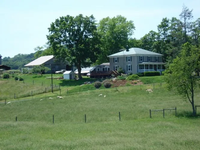 ca. 1915 Clapboard farmhouse with 3,180 sq. ft. of attractively renovated living area includes: LR, DR, Library, large kitchen, 4 BRs, 2 baths, fireplace, porches & exquisite deck overlooking water garden & countryside. Fine bank barn & nice outbuildings compliment this scenic & privately situated farm located in one of the Shenandoah Valley's most beautiful & sought-after livestock farming areas.