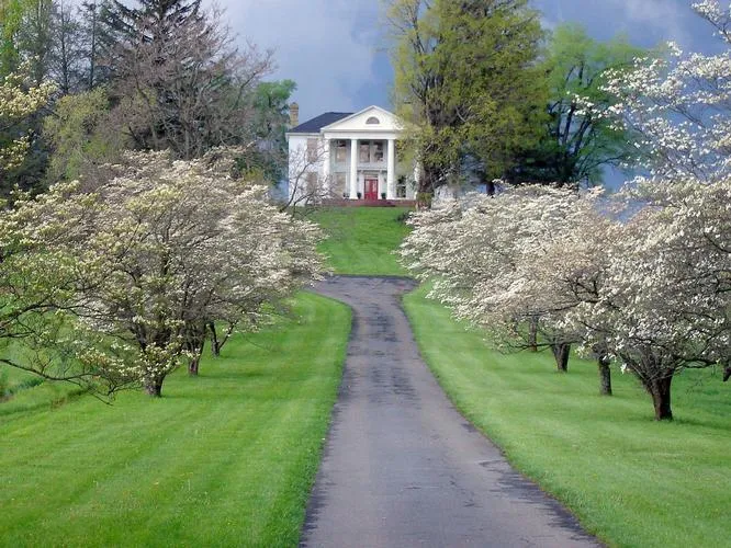 A large 1840 two story white brick manor house, recently renovated, sits on a knoll at the end of a long drive lined with dogwoods. The 4,700 sq/ft house has many wood burning fireplaces, antique mantels, four bedrooms, large living room, large modern kitchen and a 26x30 family room. From the hou...
