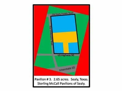 Frank Johnston of Heritage Texas Country Properties and the Retail Development Team of Coldwell Banker Commercial in Brenham (CBC Brenham) are proud to present THE STERLING MCCALL PAVILIONS OF SEALY. Pavilion # 3 with 2.65 acres is $456,584 or $3.95 per SF. 100% FINANCING AVAILABLE! Located in the city limits of Sealy on US Highway 90 with excellent Interstate 10 visibility and access, property is available in nine alternative offerings.