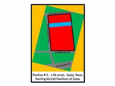 Frank Johnston of Heritage Texas Country Properties and the Retail Development Team of Coldwell Banker Commercial in Brenham (CBC Brenham) are proud to present THE STERLING MCCALL PAVILIONS OF SEALY. Pavilion # 5 with 1.04 acres is $147,347 or $3.25 per SF. 100% FINANCING AVAILABLE! Located in the city limits of Sealy on US Highway 90 with excellent Interstate 10 visibility and access, property is available in nine alternative offerings.