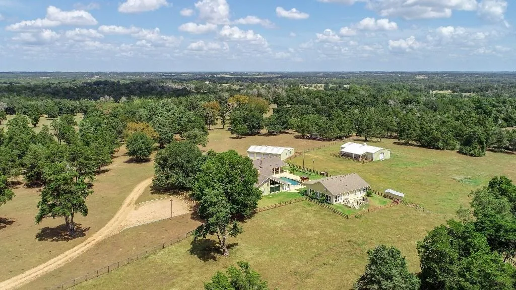 Great New Price! High and Dry and Ready to Move In! This relaxing and peaceful country retreat on 66 acres boasts a country home with four or five bedrooms (one presently used as a study) three baths, consisting of 4026 sq. ft. (living per ACAD)one loft bedroom and storage up, spacious porches in front and back complement the exterior. There are two spacious living areas and two dining areas in the main home, an inviting kitchen with stainless steel counter tops. Dining area and spacious master bedroom feature attractive cedar walls. There are extra amenities and unique features throughout the main home and along with the 3 bedroom 2 bath guest home, consisting of 1632 sq. ft living per ACAD, offer excellent views of the pool, barn and gorgeous countryside.