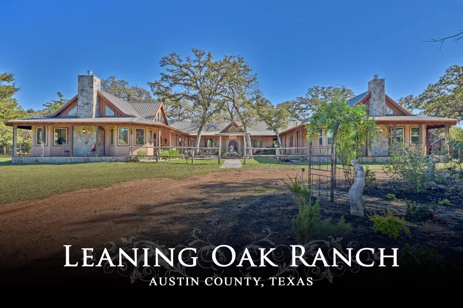 This 5798 sq. ft. (acad) home on approx. 28 acres in the Cat Spring area is designed to capture views of the land while surrounding a large landscaped courtyard. The interior is constructed with vaulting ceilings highlighted with massive beams and expanses of glass. Living, dining and major kitchen are spacious and seamlessly adjoin to form an open concept surrounded by porches, covered patio areas and decks. A master bedroom wing with all the features plus two bedrooms and extra rooms consist of media room, study, sewing or craft room, pet room, play room above, and more. To complete this impressive package add an over 5000 sq. ft. barn with 5 stalls, tack room, living quarters and a huge shop; a 3/3 guest house of approx.. 2500 sq. ft.; swimming pool and orchard. The property is diverse with pasture in front and woods in back offering wide walking or driving trails. A unique opportuni...