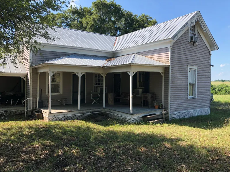 Great old 1870's original farmhouse is just waiting for you to make your own. This old homestead is perched on a high hill and surrounded by large oak and pecan trees. The views are amazing! In addition to the 3/2 farm house, there is a matching 2/1 guest house, garage, storage building and chicken coop. This property has been in the same family for over 60 years. It is Ag Exempt for hay production and grazing.