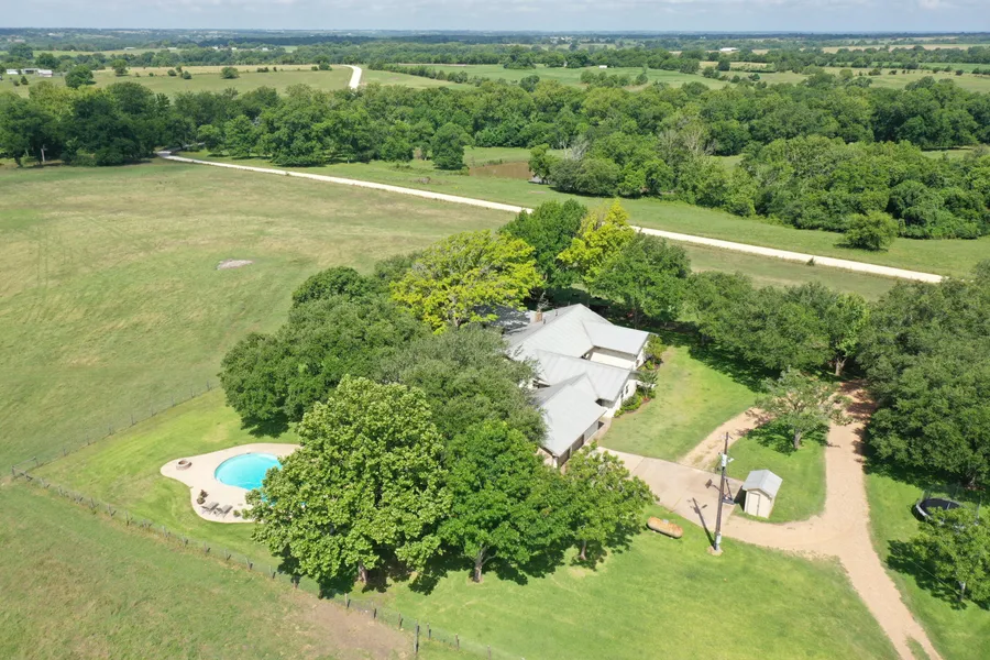 Here's the place....the place you've been searching for months to find. The approximate 105 rolling acres with a beautifully updated, move-in ready house, that's privately placed high away from everyone. The property offers improved pastures planted in jiggs and high-quality grasses, strong perimeter and cross fencing, a stocked pond, 66'x50' utility barn with concrete floors, electricity, and water, and another barn with stalls and metal cattle pens. A completely remodeled, efficient, 3500 sf house sits, surrounded by mature Oaks providing shade as you gaze and admire the long view. A 2-car garage, attached with a breezeway, gives access to an office and extra storage. The backyard setting includes a new swimming pool, and hot tub, along with a fire pit and a constant breeze to enjoy the evening sunsets. This beautiful property has over 4300 feet of road frontage, and borders Mill Br...