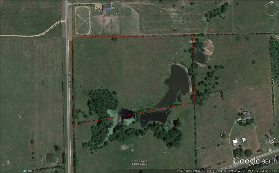 18.648 unrestricted acres 7 miles from either Chappell Hill or Bellville. Rolling, partially wooded, pond that appears to stay almost full even during the harsh drought.