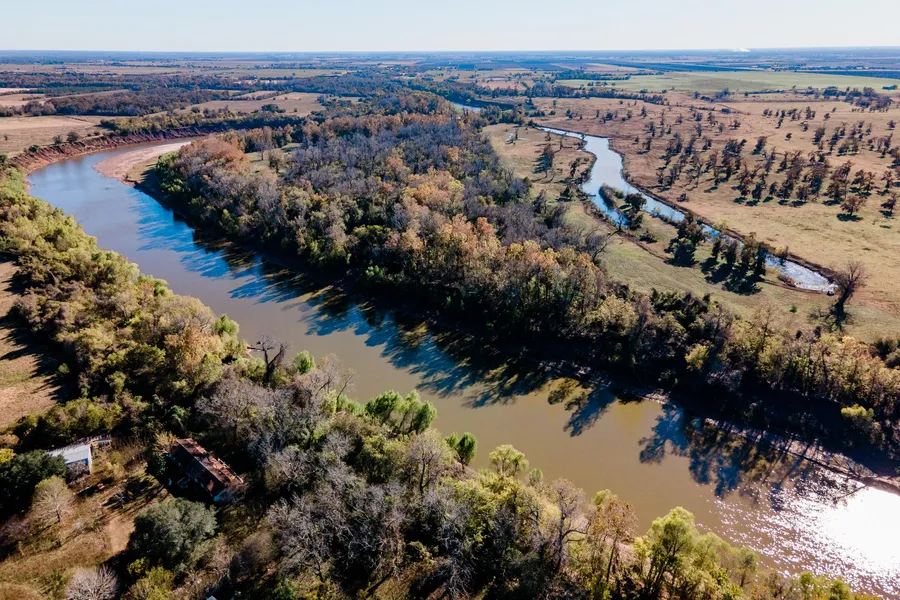 Stretching for just over 1.5 miles, even the river frontage is diverse. An oxbow lake, stocked with two types of bass and bluegills, spans about one mile. Another portion includes a sandbar that gives a different type of access to the river. A high bank marks a third portion of the ranchs intersection with the river.