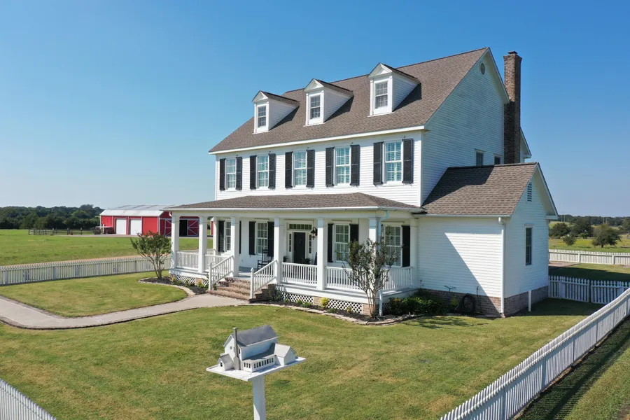 Windswept Farms is the perfect Hilltop Homestead. A beautiful 2010 custom built two-story home with 3,669. sq. ft. living area sits on 93 acres and has scenic views of both Austin and Washington Countys. This spacious 3 or 4 bedroom, 3 bathroom, white farmhouse has it all: updated kitchen, formal living, formal dining, office (or 4th bedroom), TV room and plenty of room for the whole family. You will appreciate the many extras that make this lovely home unique. The oversized formal living has wood floors & a fireplace along with a glassed/screened in sunroom to enjoy the scenery and backyard views of Chappell Hill Bluebonnet Hill. The master bedroom is located downstairs with a large master bath and custom walk-in closet. Two additional bedrooms with full bath and spacious closets are located upstairs along with an additional family/living room and office.