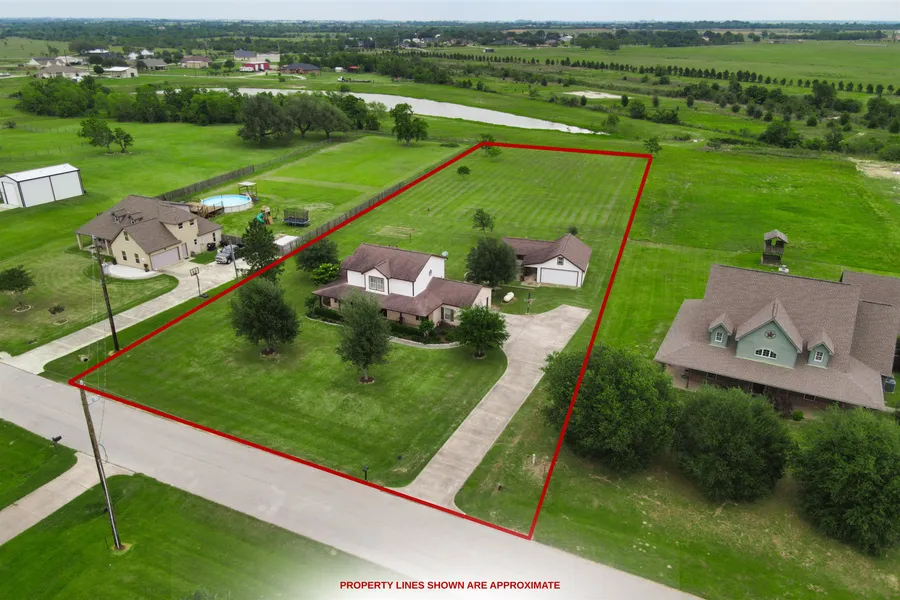 From I-10, Exit Hwy 36, Travel North on Hwy 36 to FM 2187. Turn left on FM 2187 and continue to Settlers Estate entrance on the left. The first road will be Dees Circle. Turn left and the home will be on the left.
