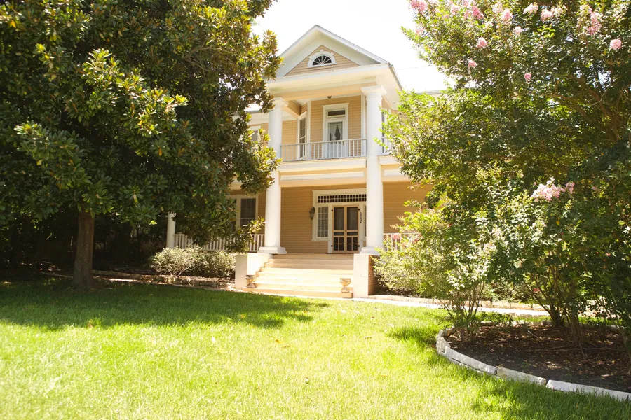 REDUCED!! This historic 1908 two story home has been carefully restored and welcomes you with its charm and exquisite architecture. The entry provides access to the formal dining room on the left and formal living room with a library on the right. The grand staircase leads to the four bedrooms and two baths on the second level, plus a parlor that opens onto a spacious porch. Special features in the home include a chandelier in the entry from the Rice Hotel, 10 ft. ceilings, wide baseboards, 2 fireplaces, double staircases, granite countertops in the kitchen, claw foot tub, wood floors, large porches. Don't miss the opportunity to enjoy relaxing on the wood deck overlooking the shaded backyard. This lovely home awaits you.
