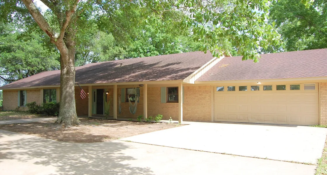 Hilltop setting! With excellent elevation this one-story brick home nestled amidst mature trees enjoys spectacular views. Sandy Creek and a tributary mark the perimeter of a considerable part of the thirty acres and it's banks provide wooded cover for wildlife. The 3 bedroom, 2 full-bath/2 half-bath home offers a large living room with woodburning fireplace and a wall of cabinets. From the island kitchen one passes through the adjoining dining area and into a multi-purpose sunroom. Amenities include a walk-in pantry, spacious utility room (with half-bath), double-vanity bathroom sinks, jetted tub, an attached and a detached garage plus front and back covered porches. Outdoors you'll find an amazing open-air party barn that could serve for gatherings, parties, weddings, reunions - unlimited possibilities! The acreage consists of sandy soil and has an agricultural exemption in place. Motivated seller, make us an offer!