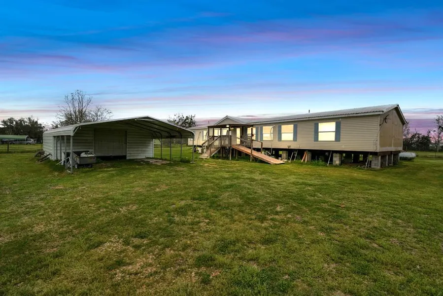 Come on out and view this 3 bed, 2 bath Doublewide home located on an unrestricted spacious acre just outside the city limits of Sealy, TX with very easy access to I-10, only 1.5 miles away. This home offers many benefits, built to last with 2x6 walls, you will be fond of the 2,187 sqft of living space. Great floorplan to live comfortably, with Primary bedroom found on one end and secondary bedrooms found on the other. Delight in the spacious walk-in shower and bench seat in the primary bathroom. Another perk are the (2) 250-gallon propane tanks outside that will convey, for all your heat and cooking needs. Refrigerator, washer and dryer are included. Property is not in a flood zone, nor has the home ever flooded, however seller still wanted it sitting high and established on double-stacked concrete cinder blocks. Enjoy the covered patios with dimensions of 20x20ft in the back and 10x10ft for the front. Call and schedule your appointment to see this home today!