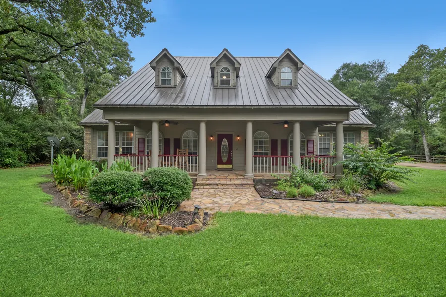 Piney Creek property with cleared areas, woods, privacy, beautiful home, outdoor kitchen and two sheds/workshops. As you enter the property, you will notice the manicured landscaping, mature trees and extensive front patio on the home. Walking inside the home, there is an office to your left, dining room to your right, and a large 20x24 family room ahead with tall ceilings, fireplace and hardwood flooring. Open to the living room is the kitchen with granite countertops, breakfast area and several windows. The primary bedroom also has nice windows in the sitting area and can accommodate large furniture. The primary bath includes a walk-in closet, claw foot tub and separate shower. Upstairs, there are 3 more bedrooms and 2 full bathrooms. In the back of the home, there is a screened porch, covered patio and an outdoor kitchen with a fireplace. Great property for entertaining and relaxing. ...