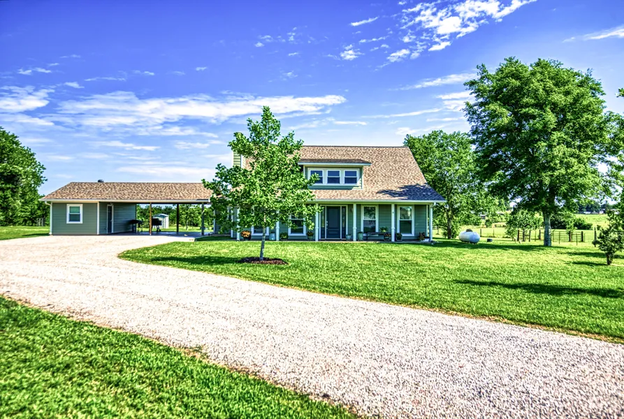 This charming, two-story, 2325 Sq.Ft., move-in ready country home offers a welcoming, relaxing environment, with recent updates, all settled on 5.91 acres of manicured yard and improved pasture in a peaceful rural setting. The home features 3 bedrooms and 2.5 baths. The open floorplan includes a spacious living area with vaulted ceiling and wood burning fireplace, kitchen and dining, all adjacent to a cozy den. The primary suite is conveniently located on the main floor, with two additional bedrooms and a full bath upstairs. Work from home with ease in the detached office addition providing privacy and separation from the main house. The property also includes a two-car attached carport and a 12'x20' storage barn. Enjoy outdoor living with scattered trees including pecans and irrigated fruit trees, raised garden beds, grape vines, and a fenced pasturehorses are welcome! Recent improvemen...