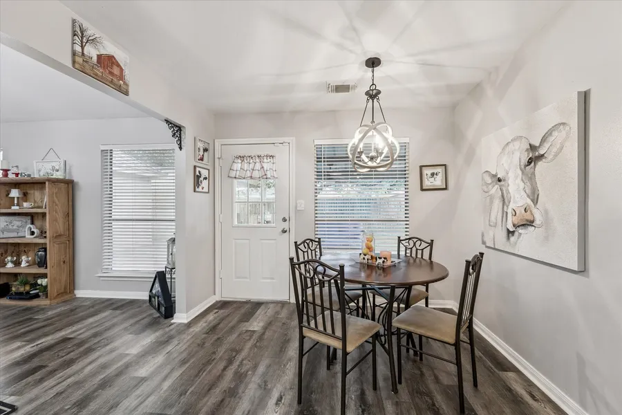 This home has been remodeled with all the best upgrades! It sits on a quiet culdesac in the most quaint sought after neighborhood in Sealy. As soon as you walk through the front door you are welcomed with upgraded flooring, the cutest entry way with bead boards, crown molding, and updated light fixture. The two secondary bedrooms provide newer carpet, paint, and fans. The massive living room centers the home with soaring ceilings. You will love the modern yet rustic primary bathroom with granite countertops and enhanced lighting and flooring. The kitchen has much to offer with up to date appliances, granite, paint, and backsplash. The most charming part of this home awaits you in the backyard with new fencing and deck. It offers an adorable, sizable shed that has windows, an ac unit and a front porch. She shed? Man cave? Let your imagination soar! Hidden behind it is a very subs...