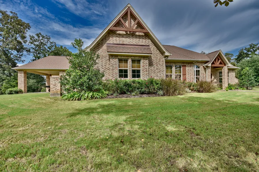 Home showcases Master on opposite side of house from other bedrooms, arched entryways, 8 ft tall wood stained doors & trim, 10 ft and 12 ft ceilings throughout, stone covered gas fireplace with blower, gas cooktop, dryer, and instant water heater, high efficiency heat-pump air conditioners, hand-scraped wood floors and tile (no carpet), granite countertops and backsplash, under mount lighting, hammered copper sinks, Living room features cedar plank ceiling w/beams, crown molding, GE Profile appliances, built ins, stone fireplace, double doors front entry, living area to patio, and master entry doors, HUGE master closet. Home constructed with special procedures/materials to avoid developing sick-home syndrome (mold inundation) from humid Gulf Coast climate.