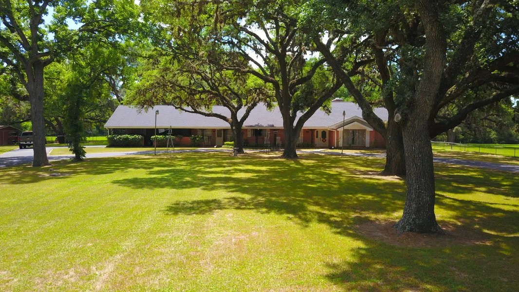 Welcome Home Country living in New Ulm, Austin County, Texas. You are surrounded with 3 beautiful acres of Live Oaks and Hickory (additional acreage is available). In a unique ranch style country home that offers 4 bedrooms, 3 baths, great room with a Hill-Country stone fireplace, matching wet-bar, custom woodwork and cabinetry, viewing porch, mother-in law wing with private entry, bath and sun porch. The home has 3562 sq. ft. of living area per the county appraisal district. The grounds are surrounded by ancient live oaks and plush pastures with wildlife galore. Come see it. You wont be disappointed. This property is located near The Falls Golf Resort and Round Top antiques.