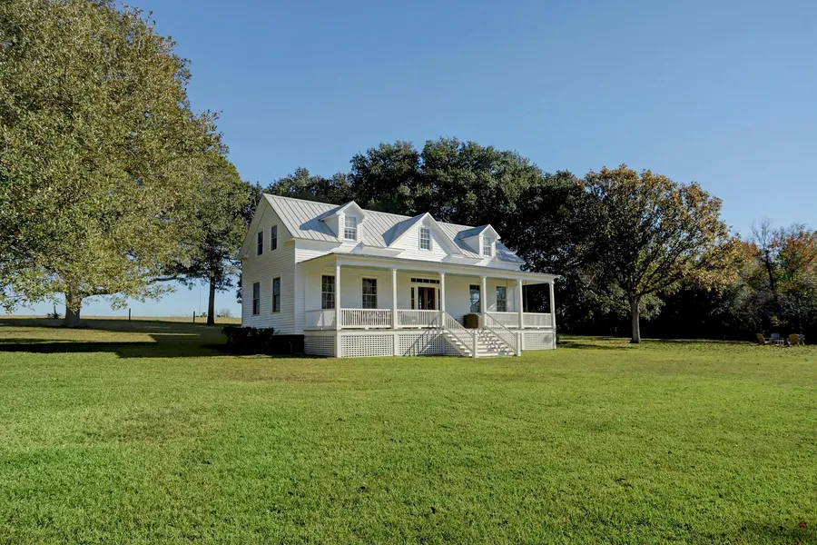Charming 1870s fully updated farmhouse on 22+ beautiful wooded acres! The light and bright classic Texas dogtrot home features a large living room, dining room/kitchen combo, full bath, and utility room down. The kitchen opens out to a large side porch perfect for morning coffee. The large primary and guest bedroom are located upstairs and are connected by a cozy sitting room. There is another full bath up. The front of the home has a huge front porch with generous seating perfect for al fresco dining or just taking in the views. The land is mostly wooded and has a beautiful pond nestled back among the trees. This property is truly what everyone wants and is located only 20 minutes from Round Top with an easy commute from Houston. Call today for your private showing.