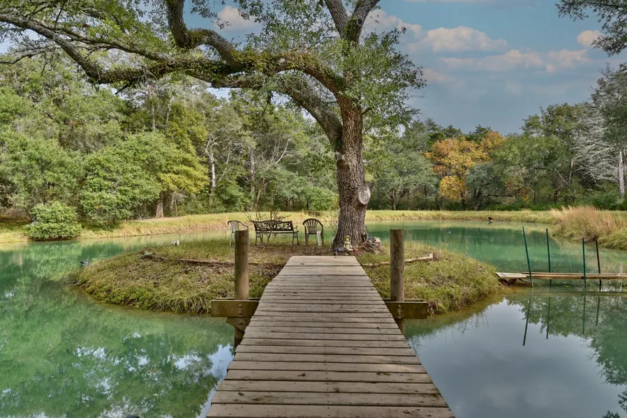 Twisted Oaks, located in desirable Cat Spring, TX, is an eight-acre, tree-filled property with a clean, spacious manufactured house and a stocked pond. As you enter off FM 1094, the road winds around the trees, and next to the pond, towards the back of the property where the 3/2 house sits. Although just off the main road, the property is private, quiet, and filled with wildlife. The 8 acres are unrestricted and has both a water well and community water, with underground electricity. Trails run throughout and around the entire property for your walking and/or driving pleasure. Properties like Twisted Oaks do not become available often, schedule today to take a tour.