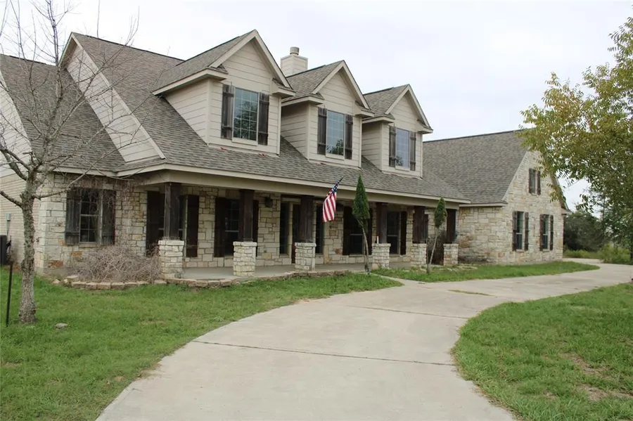 This area is booming just minutes south of Sealy and 30 minutes west of Houston, so now is the time for you to lock in your country getaway. Austin stone design built in 2006 features 3 bedrooms, 3.5 baths will all the extras needed to have a showplace to entertain family and friends. A pipe broke over the master bedroom during the freeze and no repairs will be done as the estate is selling as is.