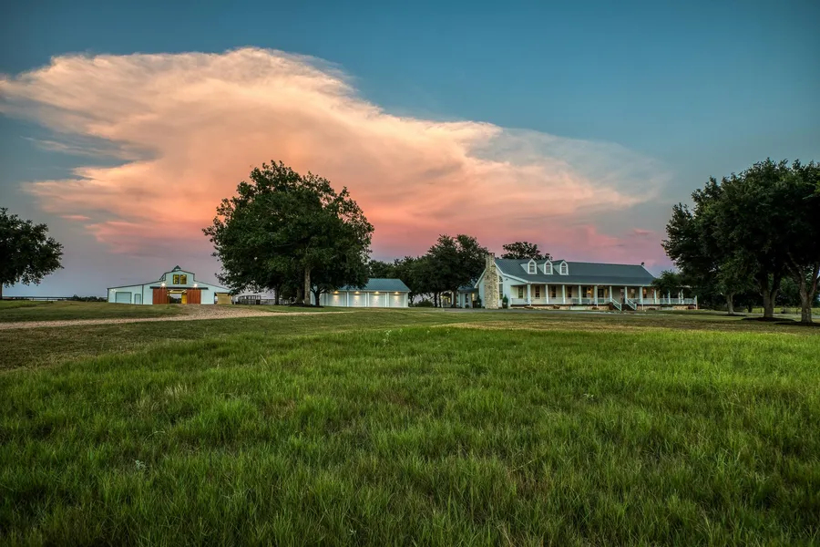 Nestled in the heart of serene Austin County countryside, this ranch offers a picturesque escape on -/+120 acres of sprawling, parklike terrain. The undulating landscape provides breathtaking hilltop views that stretch as far as the eye can see. A meticulously designed modern farmhouse (3,636sqft) stands as the centerpiece, exuding charm and comfort. Two quaint guest cottages (1,248sqft & 884sqft) provide additional accommodation options, ensuring ample space for family and friends. A glistening pool invites relaxation, while a sprawling barn with an office and well-maintained pens is ideal for showcasing prized animals. Majestic live oaks, pecan and other tree types line the property adding to the natural beauty. Multiple stocked ponds, a recreational haven for both hunting and fishing. Both perimeter and cross fencing in place, Ag exemption for hay & cattle. *Additional details upon re...