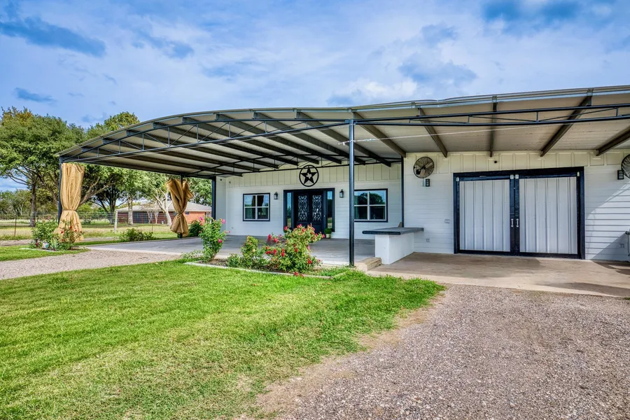Priced well under appraised value! Welcome to this stunning ranchette in the charming town of Brenham, TX! This spacious newer build residence offers an open concept layout with high ceilings and an abundance of natural light that creates a warm and inviting atmosphere. The walls adorned with shiplap add a touch of rustic elegance to the interior and the outside has almost 1200 square feet of cover patio with kitchen area for all your entertaining needs! The bedrooms in this home are truly a treat, each featuring oversized space along with customized walk-in closets that provide ample storage space. Additionally, there is a versatile ground level garage apartment that makes a great office space or the flex space that can be tailored to suit your specific needs. Whether you're looking to generate income through Airbnb, accommodate a mother-in-law, or work from the comfort of your own home, this property offers endless possibilities. Step inside and be captivated by the interior features that make this home truly stand out. Gorgeous real wood floors exude warmth and character, while the Italian marble backsplash in the kitchen adds a touch of luxury. The 8-foot red steel entry double doors not only provide security but also make a bold statement. Situated on an expansive 20-acre lot, this property boasts a picturesque country setting with breathtaking views of the surrounding countryside with the most amazing sunsets from the front porch. With plenty of room to expand and engage in various projects, you'll have the freedom to pursue your passions. The vast space is perfect for gardening and other agricultural activities, allowing you to embrace a sustainable lifestyle. Moreover, the property is currently under a current ag exemption, ensuring low taxes for the fortunate owner. Conveniently located just 10 minutes away from both Brenham and Bellville, you'll enjoy easy access to everyday amenities, shopping, and dining options. Should you need to venture further, Houston is just an hour's drive away. Don't miss out on the opportunity to make this remarkable property your own. Schedule a showing today and experience the beauty and tranquility that this Brenham home has to offer!