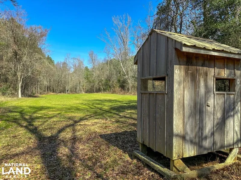 This property is the ultimate family place. The current owners have it set up for multiple family members to have their own place to stay. With power and water all at the camp. The miles of internal roads with multiple bridges crossing creeks through the mature timber is a site to see. There is merchantable timber ready to harvest to produce income right away. There are over 10 green fields with nice shooting houses with ladder stands and tripods scattered throughout the tract. They manage the wildlife and feed year-round for mature deer and turkey. This property is a must-see!