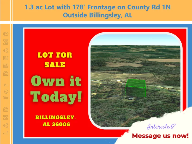 This has 178 of frontage on County Road 1 N. You can build anything you want on this unrestricted property Home Business - Both? You decide! Autauga County is home to many parks, such as Wilderness Park, Cooters Pond Park, Pratt Park, Swift Creek Park, Newton Park, Spinners Park, Heritage Park, and Overlook Memorial Park. Wilderness Park and Bamboo Forest are only 24 minutes away. Harriott II Riverboat 36.8 miles away and the Hidden Meadow Winery 32.2 miles away are just two examples of the great, local amenities. Montgomery is only a forty five minute drive, close enough for an exciting weekend getaway! Dont miss out on the opportunity to live in this charming area nestled in the great state of Alabama. Based on recent sales, the market value of this property is $16,500 and we are offering it at $14,000 cash. That saves $2,500!