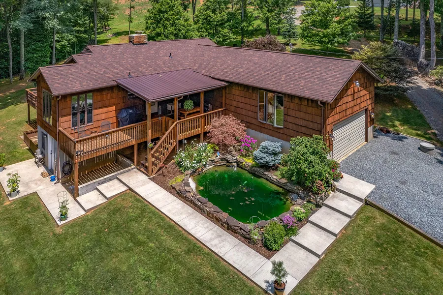 Completely renovated and restored three-bedroom, two-bath home with a two-car garage in Crossnore. This home sits on over 7 acres with a koi pond, both open and wooded acreage and a lovely stream boarding the property. New roof put on this summer. The main level features a well-equipped kitchen with granite countertops and stainless steel appliances. The dining room is located off of the kitchen with a beautiful farm table and windows to view the landscape. From the dining room, find the family room with a grandfather stone wood-burning fireplace. The primary bedroom has a great primary bath with a walk-in tile shower and Jacuzzi tub. Also on the main level is a guest room, a full bath and access to the two-car garage. The downstairs has a family room/den has a gas stove and a third bedroom. Large laundry room and storage area open up to storage and access to the side yard. Great open deck off the den for outdoor entertaining or enjoy the covered front deck to soak in the views. Sunny spots for a large garden and tons of opportunities for the gardener, children or families looking for room to play but minutes to town. Located in Crossnore. Furniture negotiable.