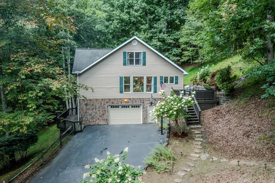 This charming home is ideally situated in the serene Hickory Ridge neighborhood, in the heart of Valle Crucis, offering the ideal blend of tranquility and adventure. With its prime location near the Watauga River, you'll have easy access to activities like fly fishing, concerts at Valle Crucis Park, shopping at the Mast General Store, and various recreational and biking trails. The open floor plan features floor-to-ceiling windows that provide abundant natural light and a treehouse-like ambiance. The living room seamlessly connects to the dining and kitchen areas, creating an inviting space for gatherings. The home offers three bedrooms and 2.5 baths. The primary suite is spacious with walk-in closets, and a luxurious en-suite bath. Two guest bedrooms and a full bath are conveniently down the hallway. A versatile third level is used as a sleeping area and game room but can be adapted to your needs. The lower level features an entertaining space, a large desk area for crafts or an office, ample storage and a laundry room with a large sink. The oversized garage includes shelving and space for additional activities like a ping pong table. Enjoy the great outdoors on the deck with an outdoor couch, nice for relaxation. The exterior also includes covered and open deck areas great for grilling and entertaining, as well as a cozy fire pit for family and friends. Recent improvements include new hardwood floors in the kitchen in 2023, refinished wood floors in 2023, new flooring in baths and bedroom in 2024, a new refrigerator in 2023, updated deck furniture in 2022 and living room couches in 2024. This home is not only excellent for family living but also holds potential as a rental property, thanks to its convenient location and the array of nearby attractions.