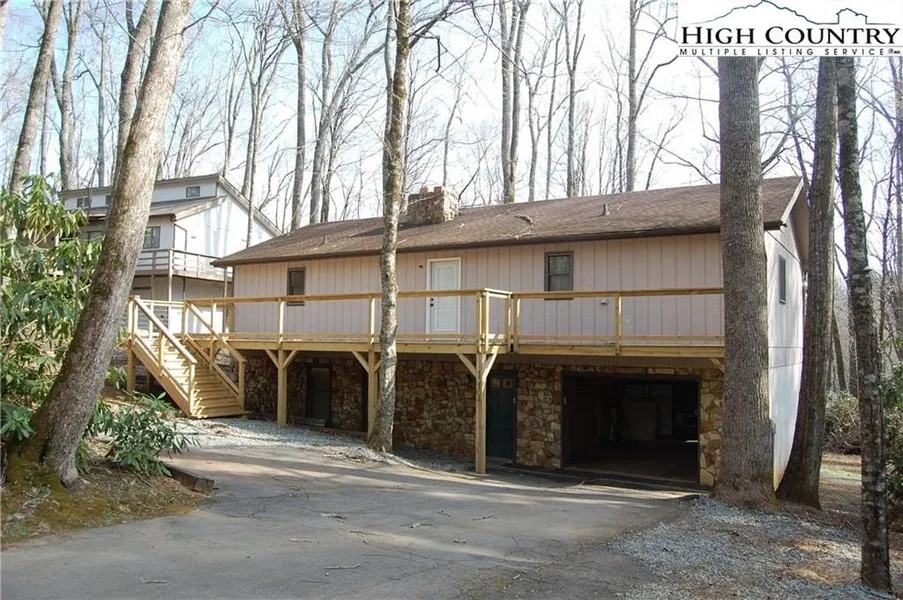 Breathtaking Living in the Blue Ridge Mountains of North Carolina at the Linville Land Harbor Community. Wood burning fireplace invites you to enjoy the Great Room concept. Modern kitchen with ample cabinet and counter space. Large main bedroom, second bedroom, laundry and large bathroom on second main living level. Solid Brazilian Teak and Oak flooring throughout the second level, and porcelain tile in all bathrooms. Full length sundeck with winter view of lake on second level. Large bedroom with stone fireplace, second bedroom, full bath and half bath on entry level. Plenty of private parking. The home is being sold unfurnished. Just bring your dreams and enjoy. The Social Club, heated pool, sandy beach and lake are only a five-minute drive with your golf cart. Boone, Linville, Blowing Rock and Banner Elk are just a short drive. Large garage with new ceiling and wall covering for large car, golf cart and shop area on front area. New Extra-large sundeck and extensive landscaping tie work.