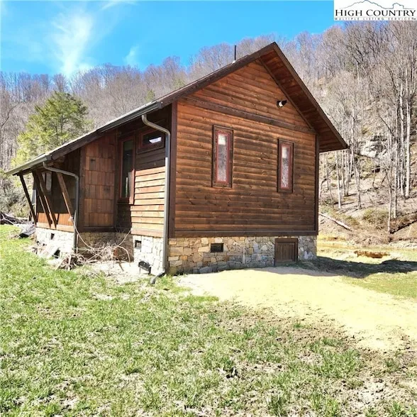 This sweet 1 bedroom 1 bath cabin was unfortunately damaged due to Hurricane Helene & the associated flooding event. Attention All Contractors & Investors. The house is being sold AS-IS w/ no repairs by seller. Please see Engineer's Report in Documents along w/ the Residential Property And Owners Association Disclosure Statement. Flood Insurance is required for this property. It is in a Flood Zone. The adjoining lot is also included in this transaction, lot #2 which will be a total of 1.19 acres. The house is a newer construction having been built in 2017-2018. The interior has wood floors & tile throughout. In the kitchen are granite counters, stainless appliances & a natural edge wood counter. The bedroom features a sliding barn door, walk-in closet & direct access to the bathroom. Bathroom floors are tile w/ a walk-in shower w/ floor-ceiling tile surround. Washer/Dryer are full size stackable located in the laundry room. Known Issues: The HVAC is gone, washed away so there is no current heated living area. The heated living area square footage is listed as 0. The cabins exterior dimensions equal 679sq'. The Fireplace is propane, but the propane tank has washed away & needs to be replaced. House does not have running water currently. The shared well pump needs to be replaced by the POA. The front porch framing, the rear covered porch & the supports were all detached during the hurricane/flooding event. There was impact damage to the roof which was a result of velocity flow and floating debris impact during the storm. Erosion from velocity flow was throughout the rear yard & around the foundation. The rear left footing was undermined, which resulted in an unsupported condition. Water did enter the house via vents & some of the wood flooring has a small amount of curling. Please use caution on the uneven side deck when entering house. POA fees are $450/yrly PER lot. Once repaired this would make a fantastic rental or vacation home. Short term rentals are allowed.