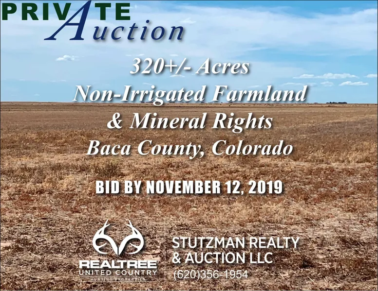 Contact United Country Stutzman Realty & Auction / Realtree Hunting Properties to learn more about this Baca County, Colorado property. Available by Private Auction, Bid by phone, Bid by November 12, 2019.