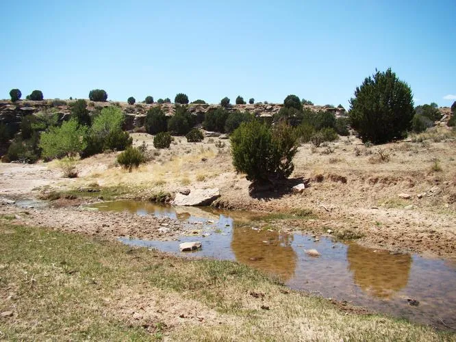 This ranch is full of wildlife, as is the whole Black Mesa area. Pronghorn antelope herds roam the northern prairies, while deer (mainly mule, some whitetail) and Rio Grande turkey will be found all through the canyon bottoms. Black bear, mountain lion, and bobcat can be found here too, as well as blue quail and migratory ducks and dove. The ranch has never been commercially hunted and has not been hunted at all in the last several years. There is virtually no hunting pressure around the ranch either.