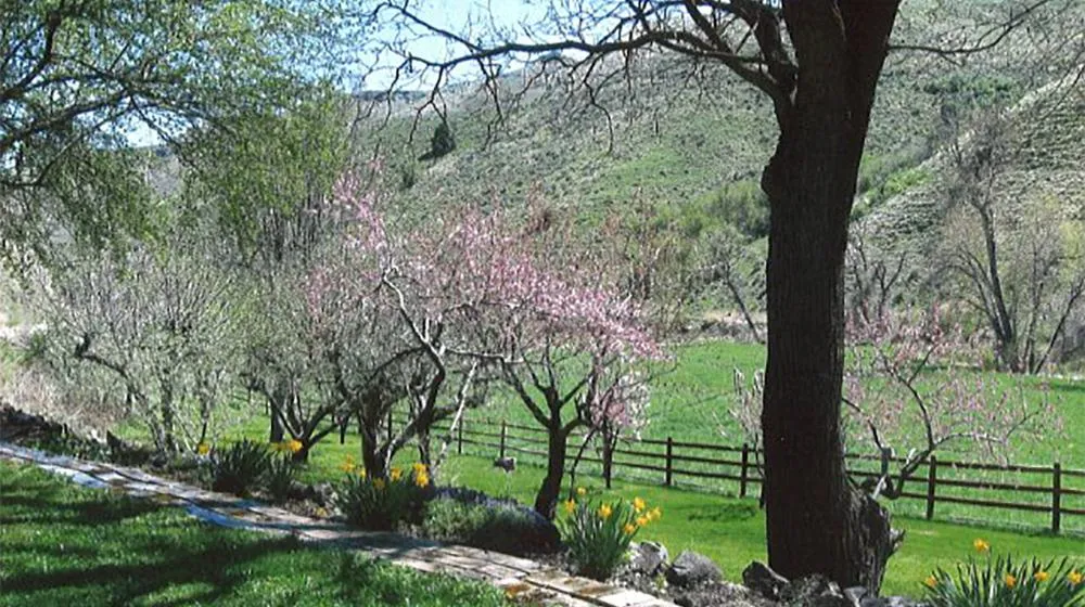 ranch is located along Dixie Creek. A 1951 home is nestled among the tidy landscaping of rocks, fruit trees and cedar trees.