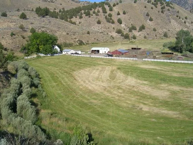 Northeast Oregon, Baker County, Canyon Ranch: 1200 +/- deeded acres on the Burnt River. Irrigated meadows, out-the-gate BLM allotment (6 mo. permit), irrigation water for 76 acres of meadow hay & pasture. Improvements include 3 bedroom, 2 bath, two-story home, extensively remodeled in beautiful condition, machine shed, storage building, corrals. Excellent deer, elk, game birds & fishing on your own property. Ideal horse or purebred ranch. $850,000